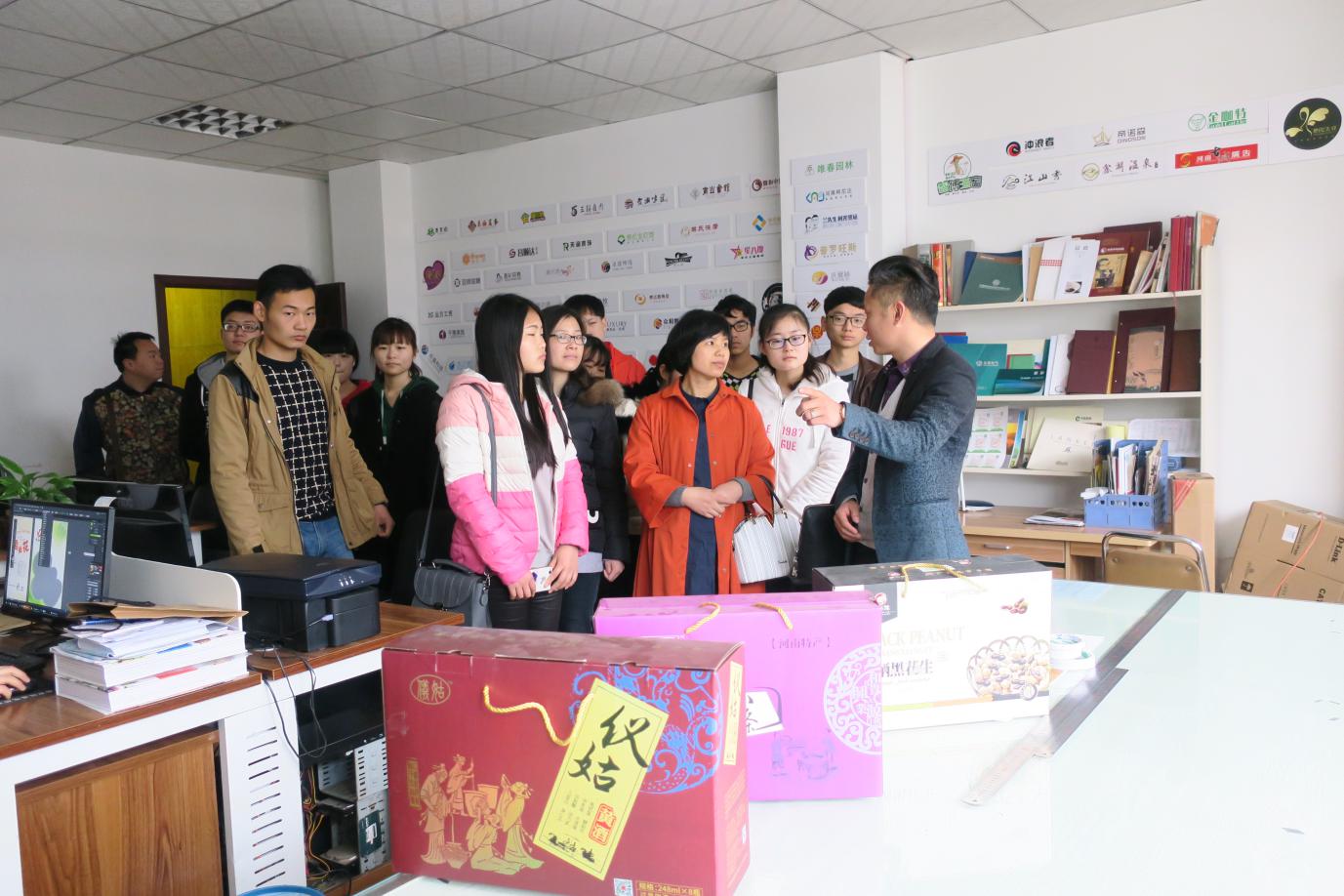 导师带领卓越人才班成员参观的第一站是河南优彩图文快印有限公司,公司人员向同学们展示了企业的快印设备,办公场所,还有大量的广告设计项目,网店装修与详情页设计项目以及电商产品包装设计项目,企业宋总表示欢迎各位同学在课外之余前来公司学习、实习、就业。