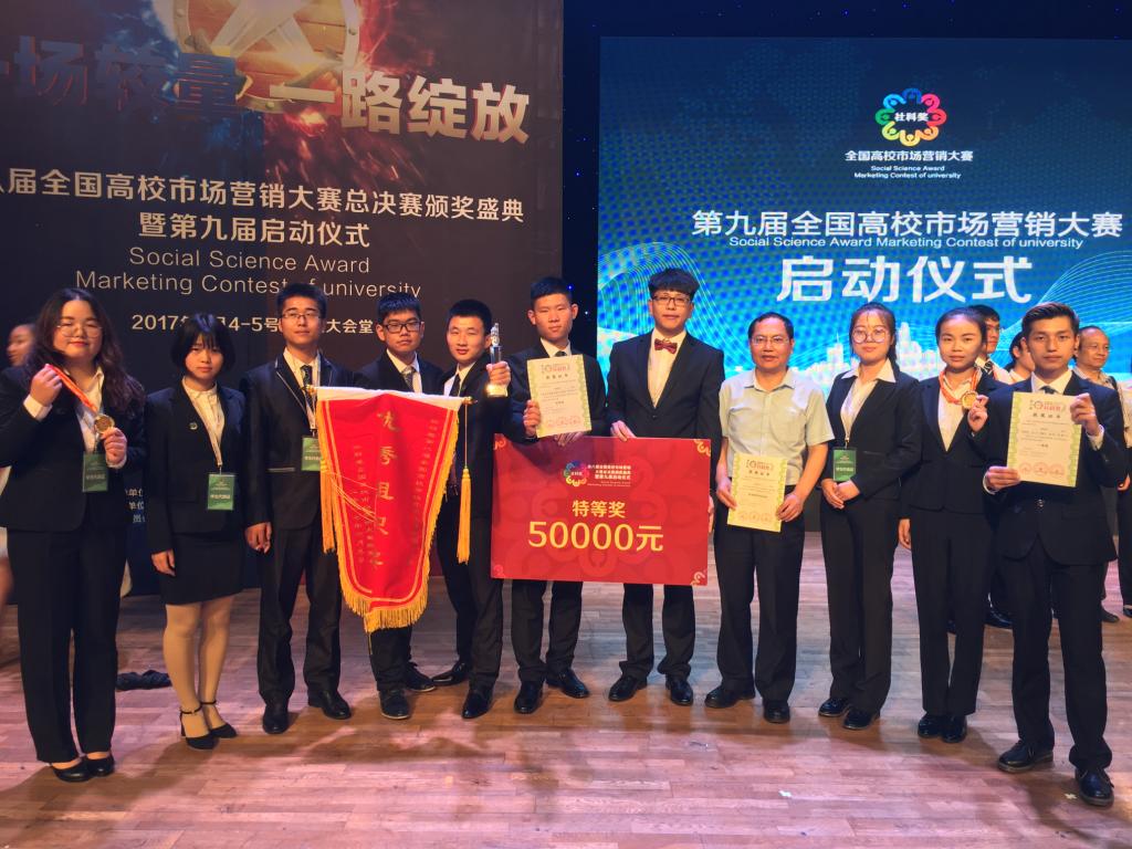 2017年6月5日,“社科奖”第八届全国高校市场营销大赛全国总决赛在杭州中国计量大学落下帷幕,由德赢官网2014级、2015级、2016级市场营销专业学生混合组建的黑马战队、all4win队分别获得特等奖、一等奖,创造了一所高校获全国高校市场营销大赛总决赛高级别奖项新记录。德赢官网还获得优秀组织奖,指导教师钟和平教授获2016-2017年度营销教学名师奖。