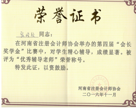 河南省注册会计师协会主办的第四届“会长奖学金”选拔考试于2016年10月22日在河南财政金融学院举行,我省36所设有财会类相关专业高校推荐的1023名优秀大学生或研究生参加了本次考试。