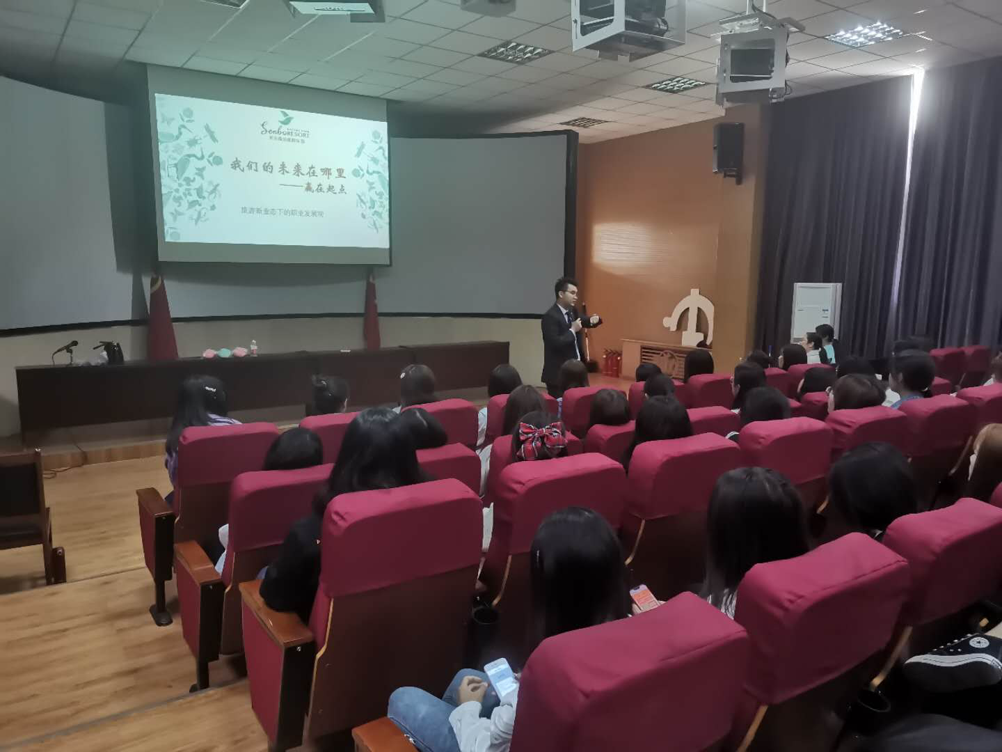 为了给即将毕业的学生提供更多的就业岗位和信息,为新生们上好“本科第一课”,旅游与酒店管理系与协同育人单位——杭州开元森泊管理公司、杭州宝盛水博园大酒店作了充分沟通、精心准备。杭州开元森泊管理公司培训经理单磊、杭州宝盛水博园大酒店质培主管裴姗姗,旅游与酒店管理系的刘春丽老师、刘晓静老师、帅军霞老师、刘红芳老师及团委书记谭芳丽等老师共同参与活动。