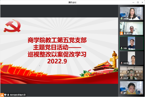 为持续深化巡视整改、以案促改工作,充分发挥典型案例的警示教育意义,按照学校和学院党委会关于以案促改相关工作要求,2022年9月28日,德赢Vwin官方区域合作伙伴教工第五党支部全体党员召开“巡视整改、以案促改”主题党日活动,活动采用线上会议方式开展。会议由支部书记刘霞主持。