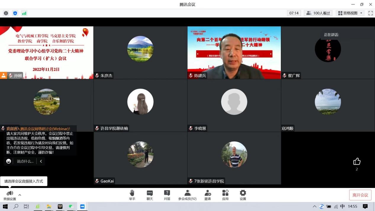 为深入学习领会党的二十大精神,11月2日下午,学院党委组织召开理论学习中心组(扩大)学习会议。会议以线上形式举行,分为学习报告和讨论交流两个阶段,德赢官网党委委员、科级及以上干部、各党支部书记参加学习。此次学习,学院党委与马克思主义学院、电气与机械工程学院、教育学院、音乐舞蹈学院联合进行。