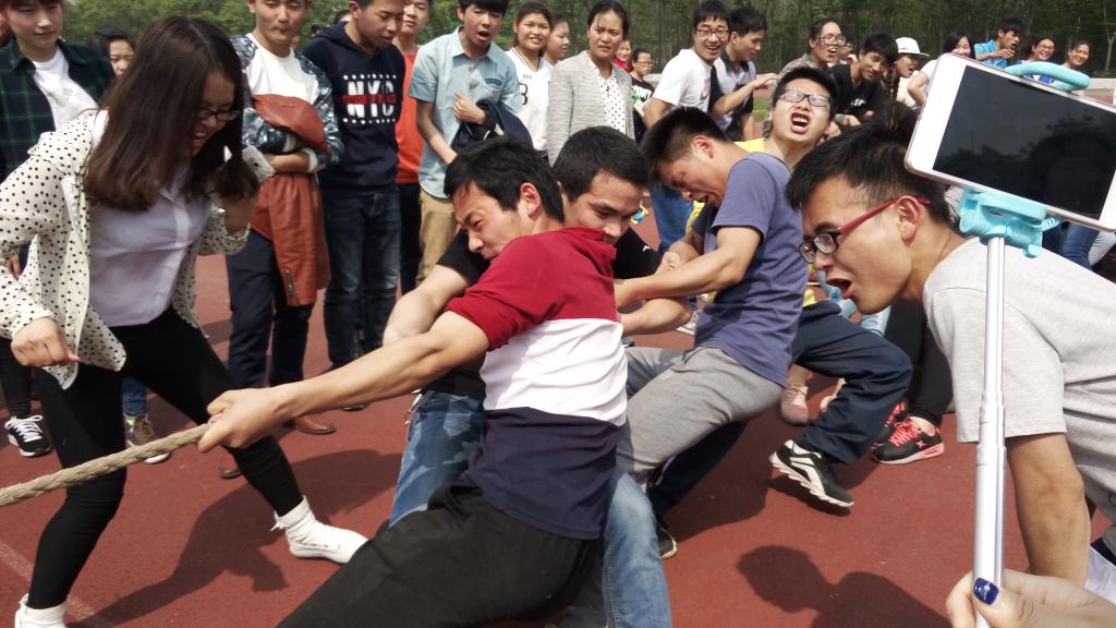 本次比赛共12支队伍参赛,每队20人,采取男女混合方式进行比赛,比赛采取淘汰制。下午两点,比赛正式开始,两队队员各自就位,比赛哨声刚一响起,队员们就紧握长绳,口中齐喊着:“一二、一二”,憋足了劲拼命往后拉,孔老师也在旁边呐喊助威,恨不得抓紧绳子和同学们一起努力,拉拉队员们也在旁边为自己班的队伍加油,号子声,呐喊声,此起彼伏,飘荡在田径场上空。裁判们依据公平公正的原则,同学们本着“友谊第一,比赛第二”的原则,整场比赛进行有序,经过激烈的角逐,最终工管2班获得冠军,经济学和工管1班分别为亚军和季军。