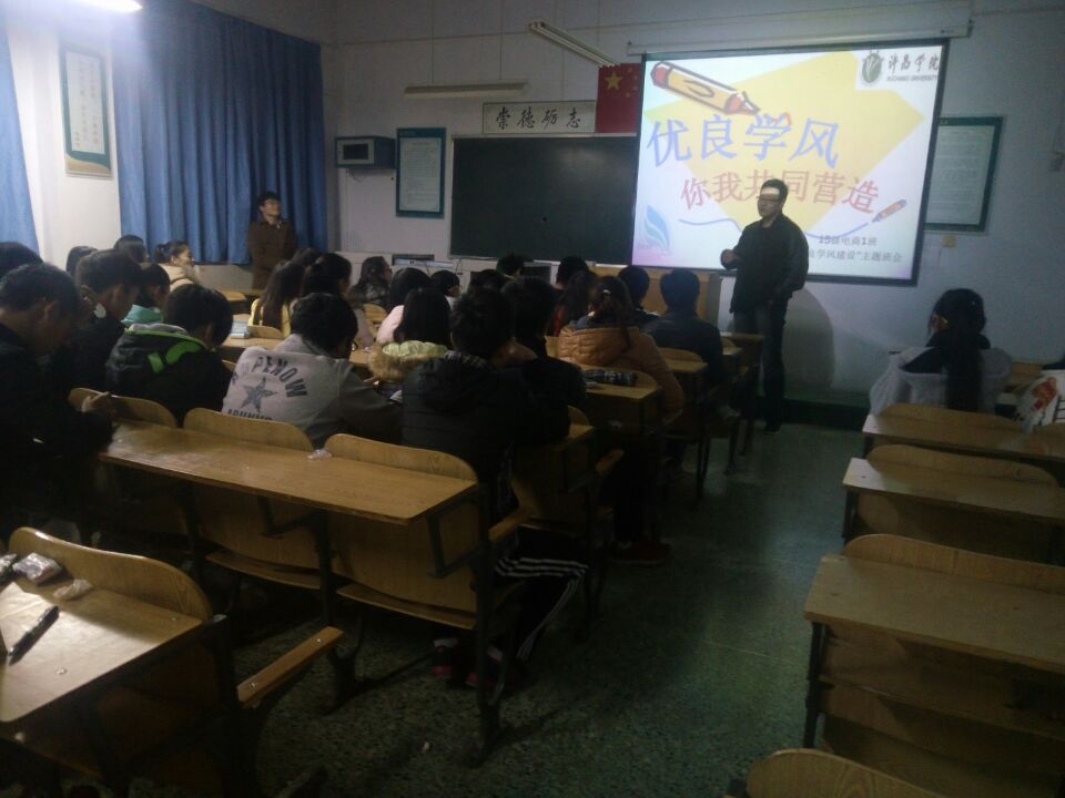 为营造良好的学习氛围,进一步加强班级学风建设,2015年11月17日,15级电子商务1班在A2-305教室开展了“优良学风建设”主题班会。15级辅导员张志豪老师应邀出席本次班会,电子商务1班全体同学到场。