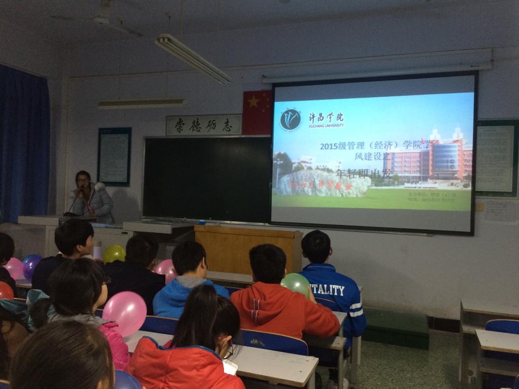 为了提高同学们的学习积极性,加强班级学风建设。2015年11月17日,15级财务管理(注册会计师方向)2班在A2-302教室召开了以“学风建设之年轻即出发”为主题的班会。班长张进宽和团支书杨慧主持了班会,财务管理(注册会计师方向)2班全体同学到场。