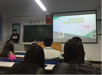 班会上,班长以一曲“我的未来不是梦”引出班会主题,意在告诉同学们在学习中要有不屈不挠的精神。随后班长对班级学风建设情况进行了简单阐述,加深了同学们对学风建设重要性的理解。大家针对学风建设问题展开了热烈的讨论,并积极的上台发言。班会气氛一度推向高潮。接着,团支书针对班级中出现的不良学风问题提出了改进措施,并向同学们分享了自己的学习经验。最后,辅导员张志豪对本次班会进行总结,他表示:“希望班级学习氛围越来越浓厚,学风建设越来越成功。积极打造优良学风,建设文明班级。”张志豪老师的讲话引起同学们的热烈掌声。