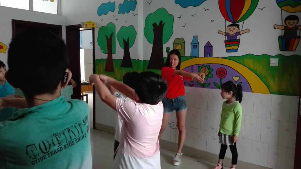 7月8日,许昌学院德赢Vwin官方区域合作伙伴编外雷锋连暑期赴残联社会实践队的队员们在残联教孩子们练习儿童版舞蹈《青春修炼手册》,以此来丰富孩子们的课堂。