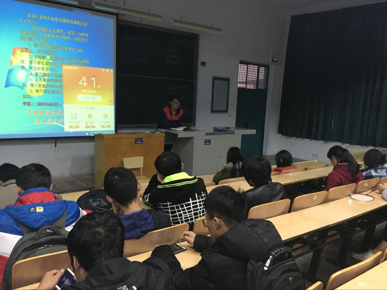 班会开始时,班长郭毫为大家报告了上周工作,包括卫生、纪律、课堂等多个方面。其中,着重提出了班级QQ群极少数同学不积极回复的问题,并点名批评,显示了班级信息及时收发的重要性,大家也都表示理解,并表示今后会调整态度,积极配合。随即班长引出主题:学风建设。同学们对学风建设表示有些不了解。班长指出,学风建设是一个长期性的工作,需要每个同学积极配合,大学生活确实没有想象的简单,这就需要我们用不同的方式去对待,活出自己的姿态,所以大家要一块为班级贡献出自己的一份力,努力建设好本班的学风、班风。并指出并从以下几点进行建设:第一我们要有一个共同目标。第二,积极参加院内校内活动,并积极组织自己班级的活动。第三,要有良好的奖惩制度。第四,定期开展主题班会。第五,每个同学都要用心,唯有用心才能做到最好。同学们也针对此主题进行讨论,不少同学也都提出自己的建议,大家都想为班级贡献自己的一份力。随后,文体委员再次介绍班委工作的不易性,希望同学们理解班委工作,增加班级的凝聚力。期末近在眼前,学习委员鼓励大家积极备考,争取全班无挂科。最后,专业负责人对本此班会及我班近期工作提出建议并作出鼓励。