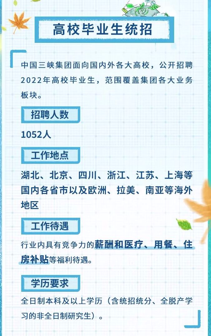 3.中国长江三峡集团有限公司2022年“脱贫家庭毕业生”招聘公告