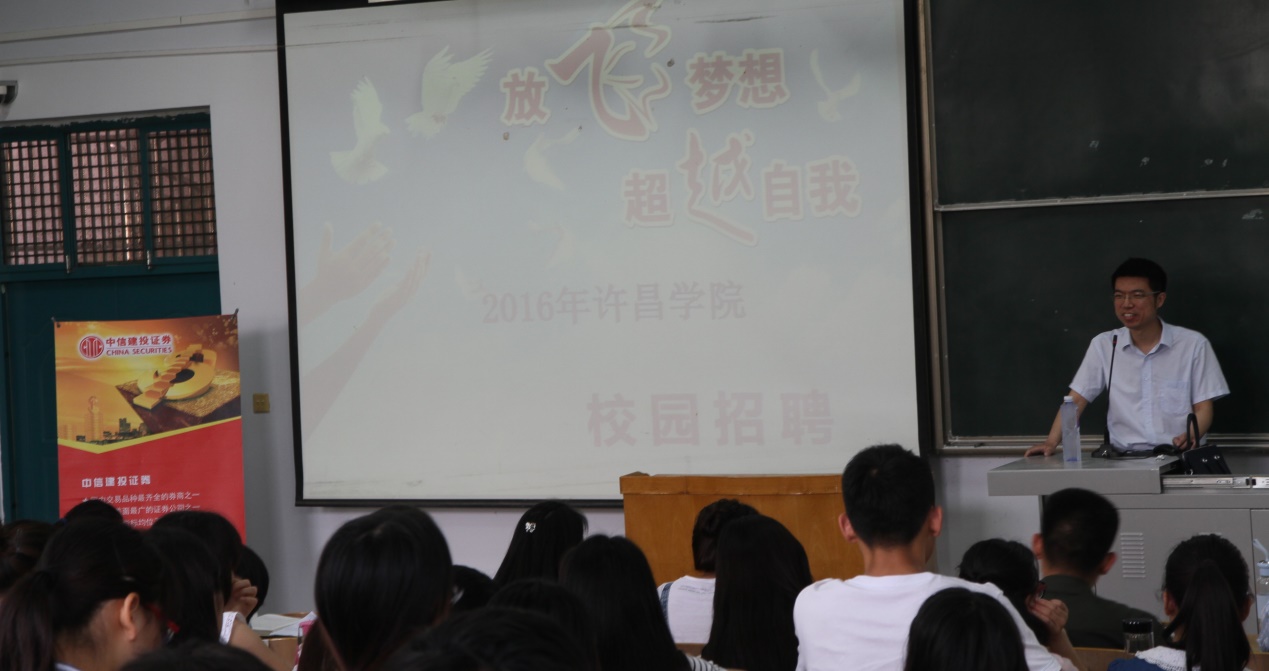 就业是每个大学生都要跨过的一道门槛,是人生的一个重要转折点,这次宣讲会让大家更加深入的了解了当今中国资本市场的发展和证券行业对优秀人才的渴望。许昌学院德赢Vwin官方区域合作伙伴的学生一定会做到既不妄自菲薄,又不好高骛远,踏踏实实储备专业知识,把实习和就业作为展示德赢Vwin官方区域合作伙伴学子风采的一个平台,充分发挥自己的才干,为中国资本市场的发展做出自己的贡献。