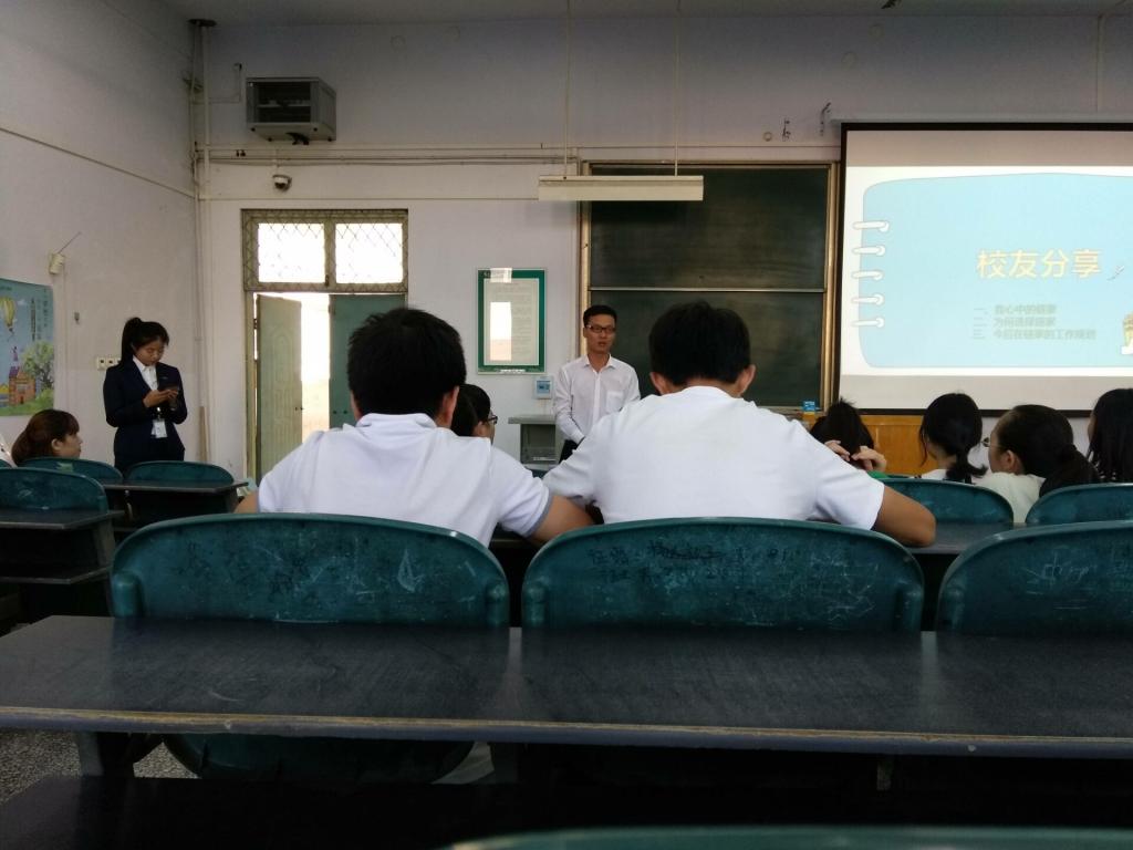 首先,黄进国经理向在座的学生们展示了北京链家的日常工作场景、公司的组织架构、薪酬体系和用人标准,让同学们对北京链家有了深刻的了解。接着,在链家实习的张博同学向同学们分享了自己在链家实习的经历,讲述了自己选择链家的原因,以及到链家以后的规划。他表示,虽然在链家实习时间并不长,但是锻炼了自己的能力,感受到了家的温暖。张博同学幽默风趣的语言,引得同学们笑声连连。最后人力资源部王胜华主管为同学们解答疑惑,向同学们介绍了北京链家公司的招聘流程。