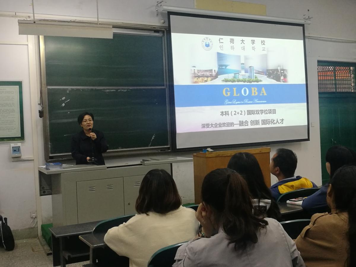 宣讲会上,韩国仁荷大学GLOBA项目的李主任为大家详细的介绍了韩国仁荷大学的办学条件、师资力量和课程安排,并集中回答了同学们的问题。